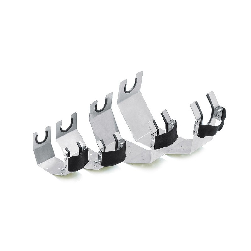 Holders for separatory funnels of different sizes made of stainless steel.